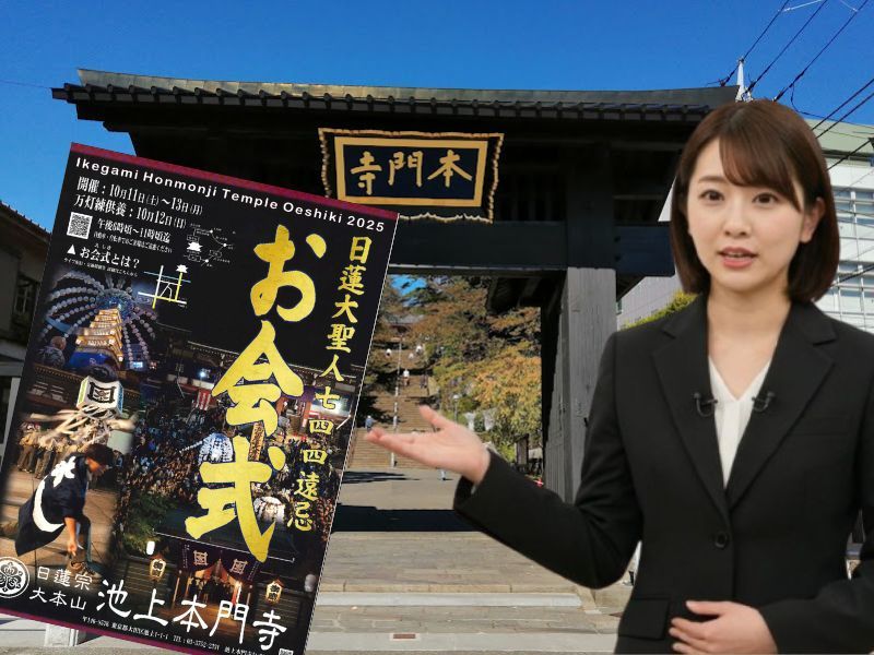 池上本門寺の公式サイトによると、11日に法要、12日に万灯練り行列、13日に特別説法・臨滅度時法要と臨滅度時の鐘が打ち鳴らされるそうです。