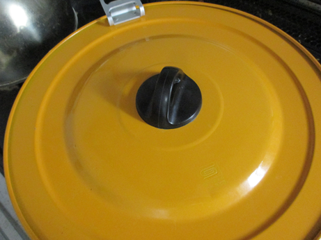 8.蓋をとって、水がとんだことを確認したら、まわりからごま油をまわしかけてパリパリに焼きます