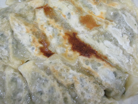「羽根」というのは、要するに片栗粉や小麦粉が、餃子の肉汁を吸って膜(羽)になり餃子をつなげているのです。